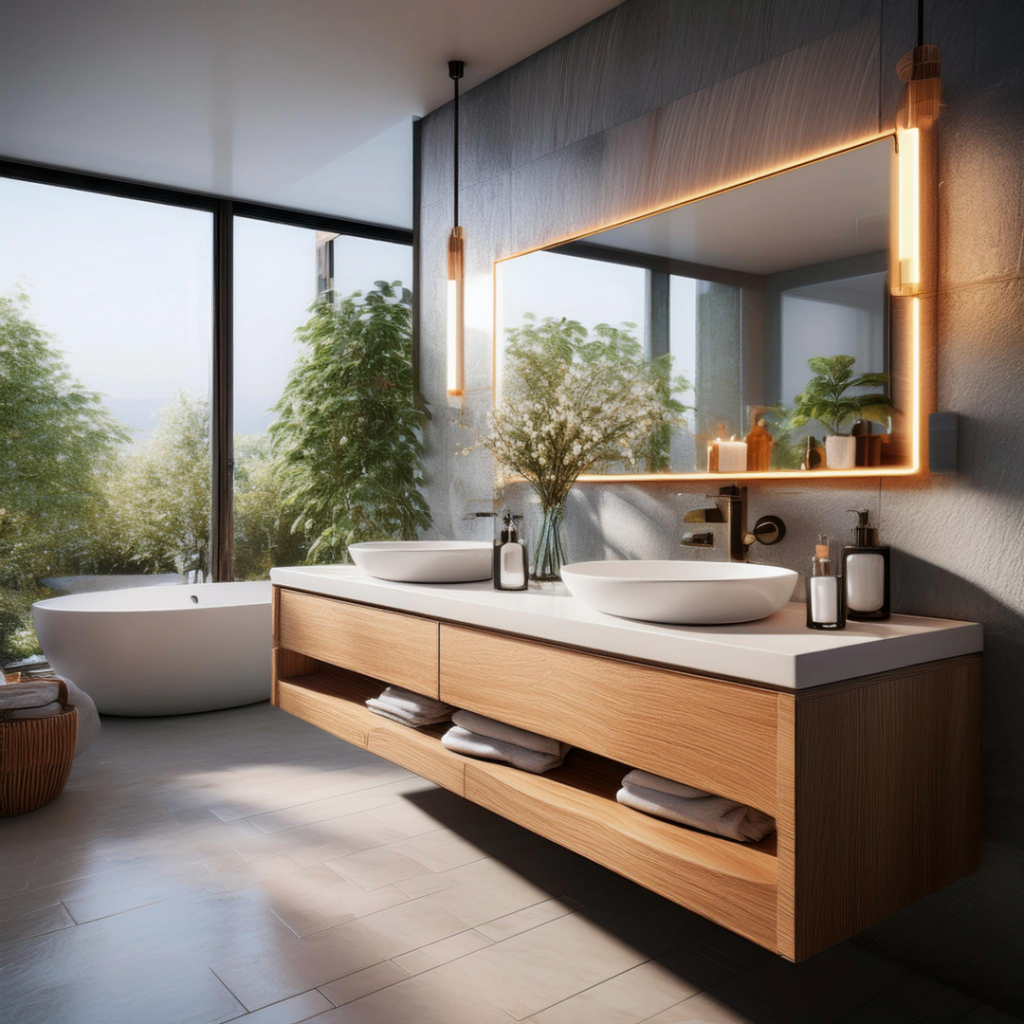 مبلمان حمام مانند آینهها، کمدها و قفسه ها باید به دلیل تفاوت دما و رطوبت نسبی بالای هوا در حمامها از مواد مقاوم تری مانند چوب، پلاستیک یا استیل ضد زنگ، تولید شوند.